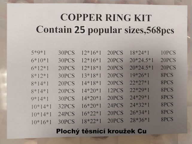 Flachdichtung - BOX 25 Typen - 568 st. CU