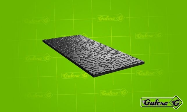 zweite Art von Anti-Rutsch-Gummi ist das sogenannte strukturierte Gummi. Wie der Name dieser Gummimatten schon sagt, ist seine Oberfläche nicht gerillt, sondern in kreisförmigen Mustern ähnelt Münzen bedeckt. Die Anwendung dieses Antirutschboden ist sehr ähnlich zu der des gerillten rutschfeste